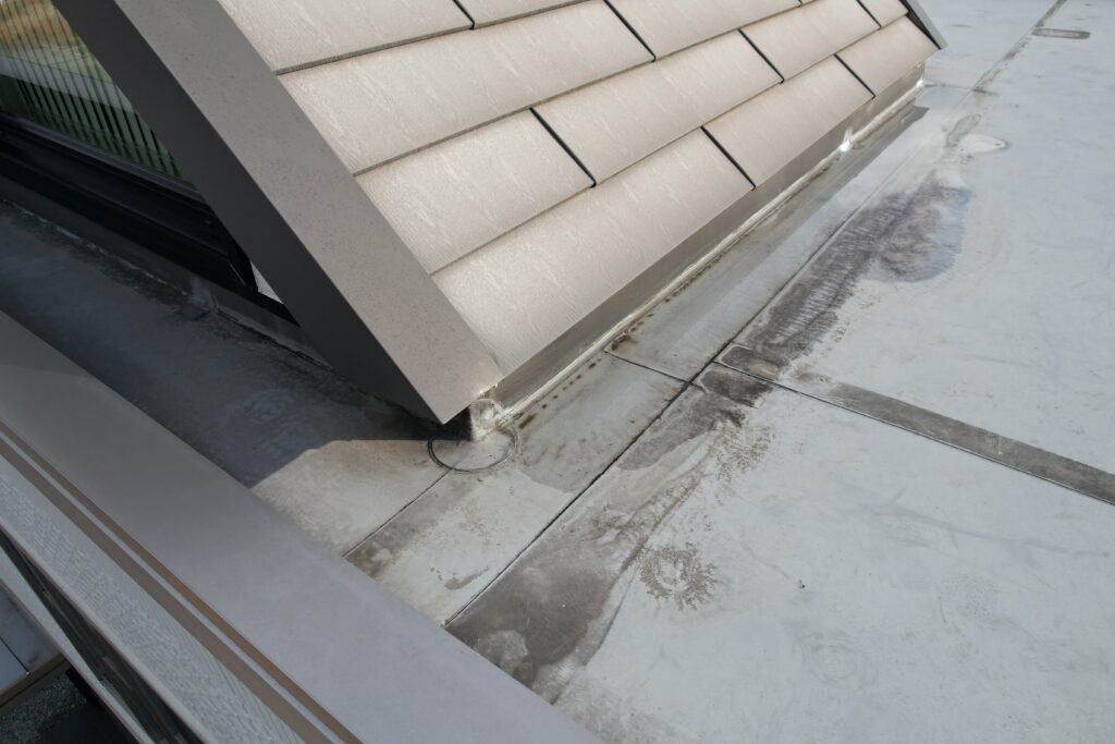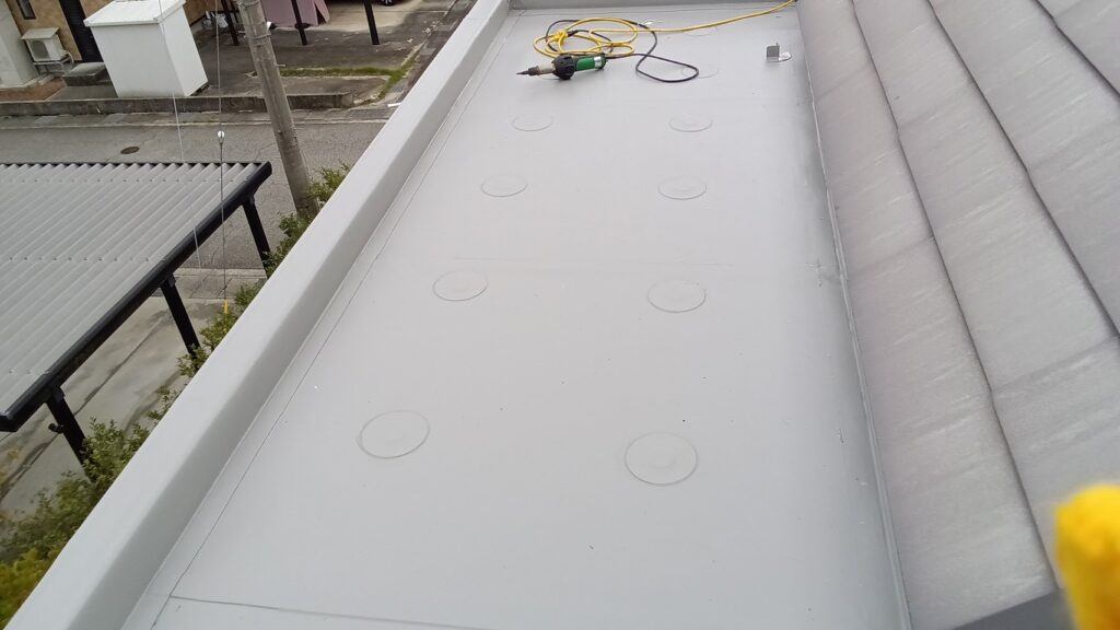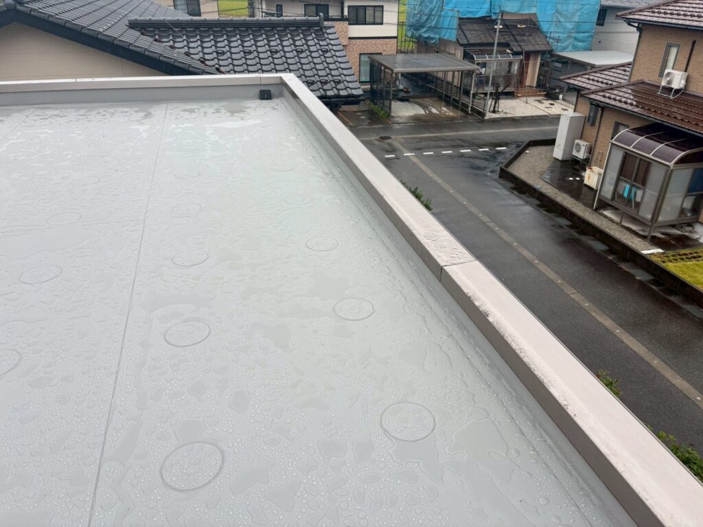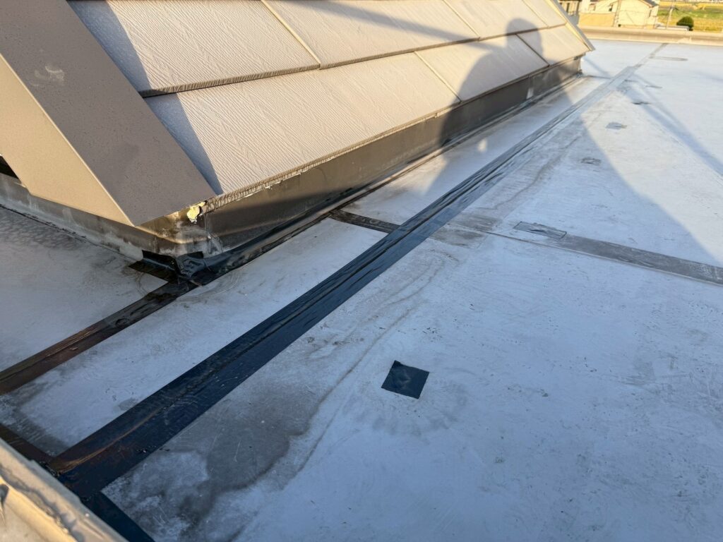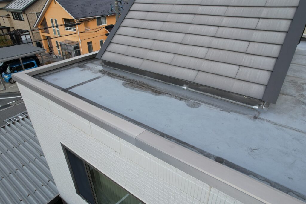 屋上の様子です。 半年くらい前から、2階天井の換気扇からポタポタと雨漏りをしてきているとのことで、現地調査をしてきました。