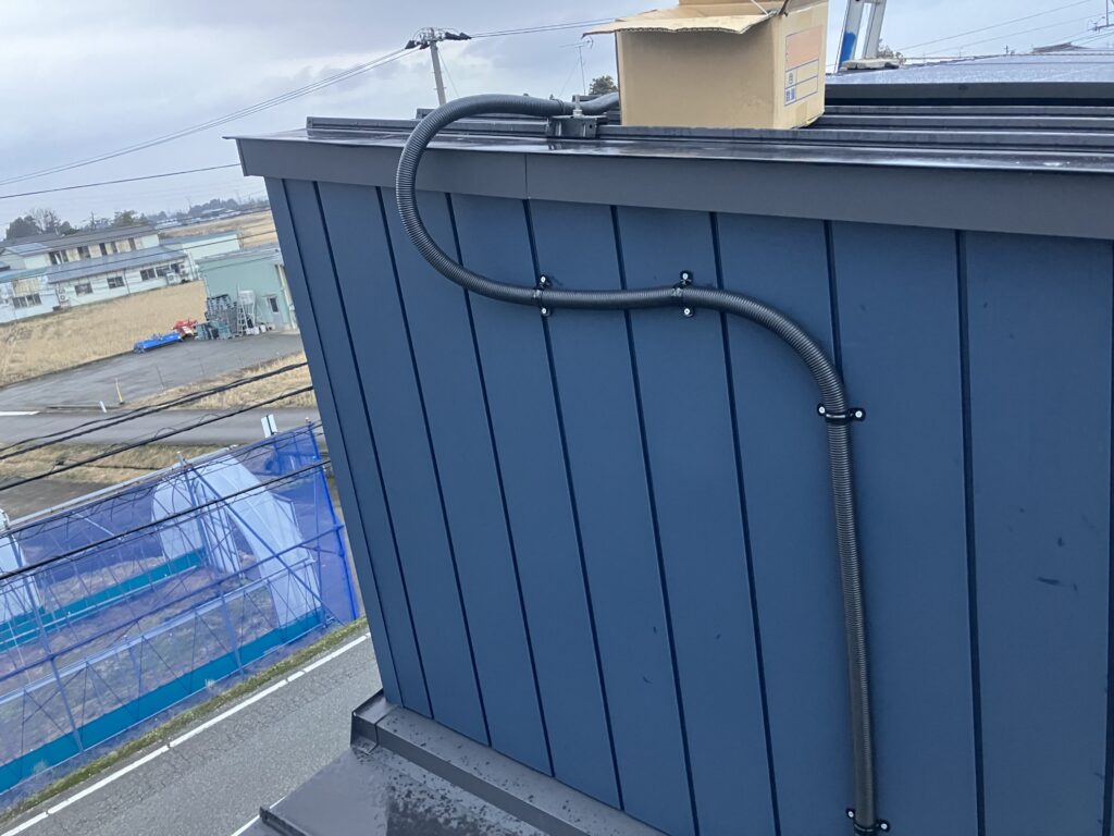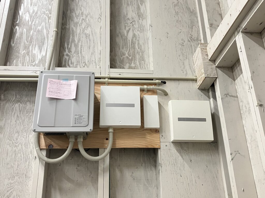 パワーコンディショナー設置後です。 太陽光パネルで発電した直流電力を、家庭で使用可能な交流電力に変換する重要な機器です。