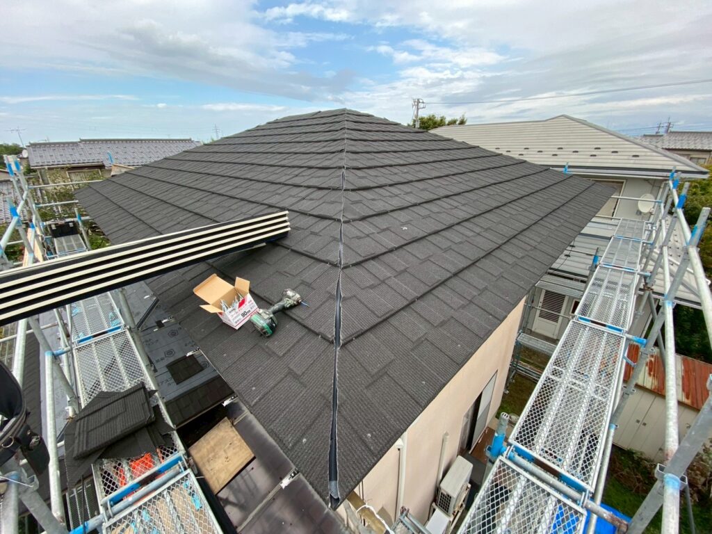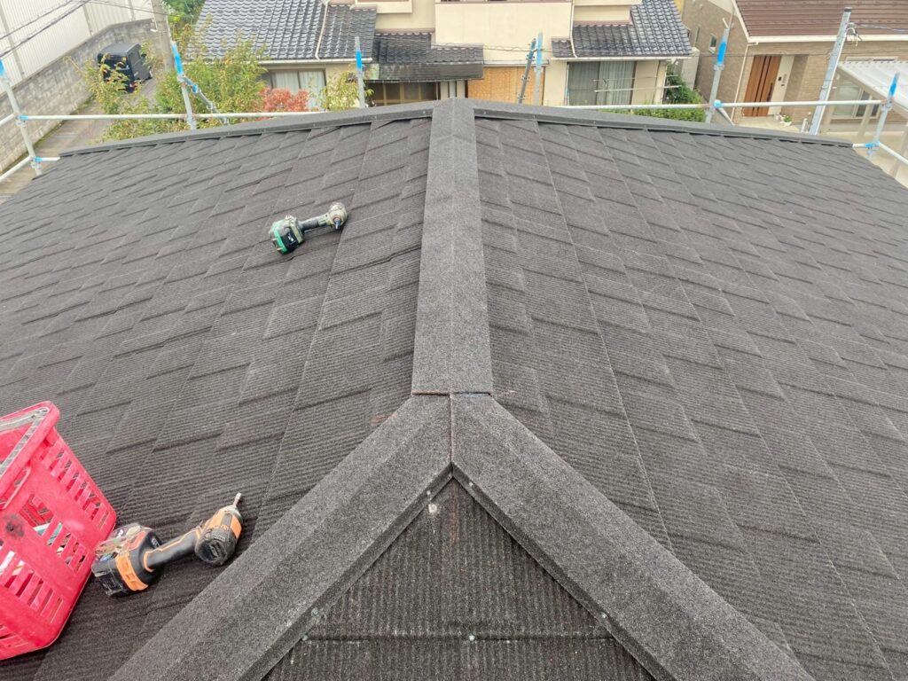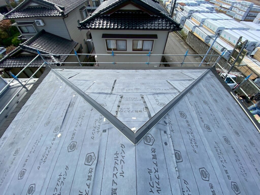 下葺き材を施工し、セネター(屋根材)を専用のビスで取り付けていきます。