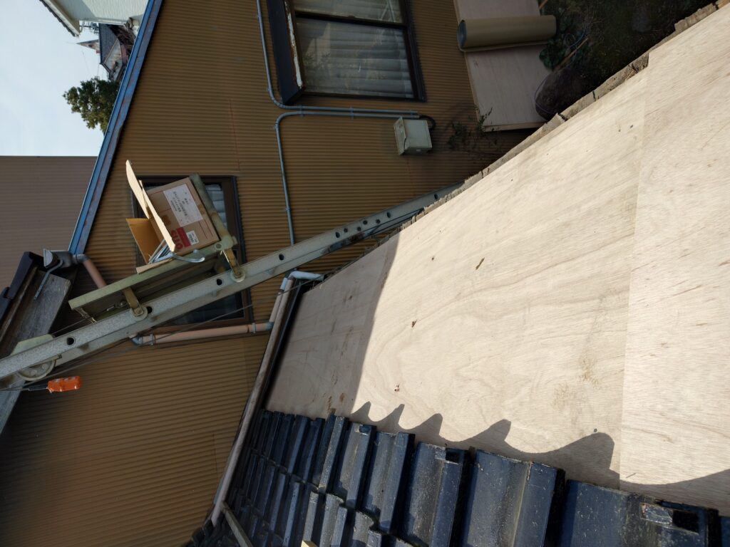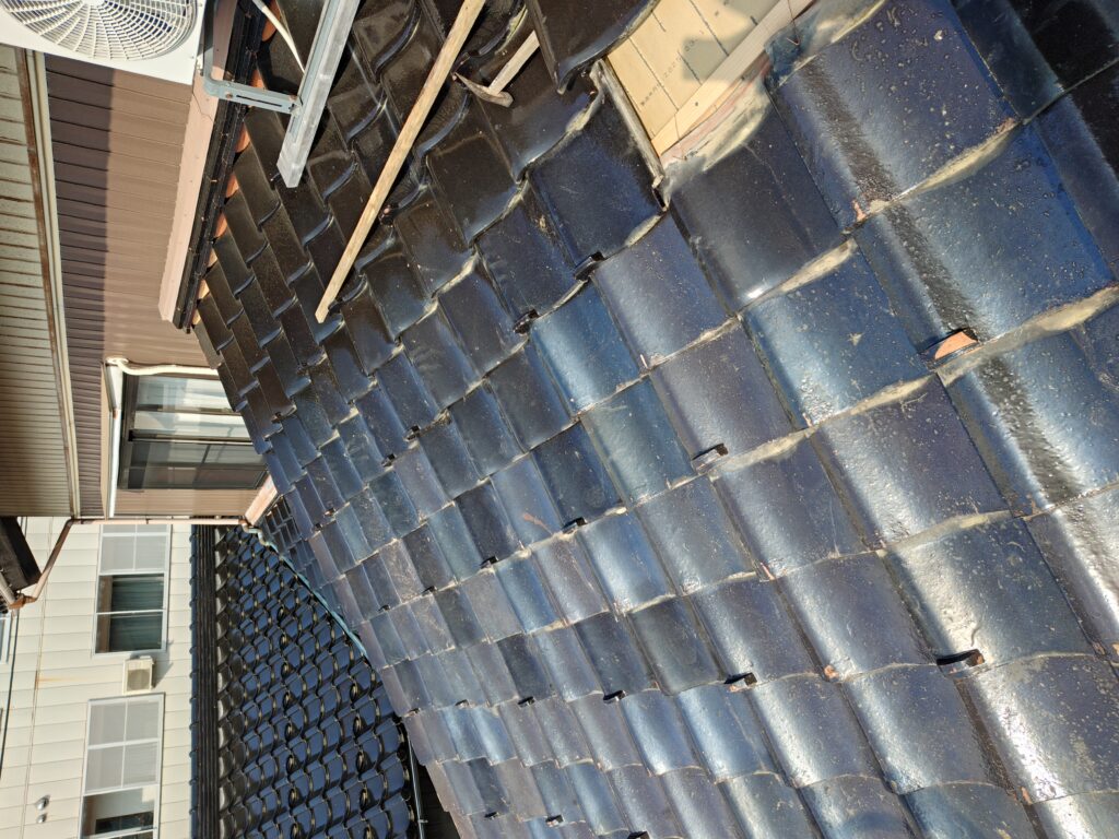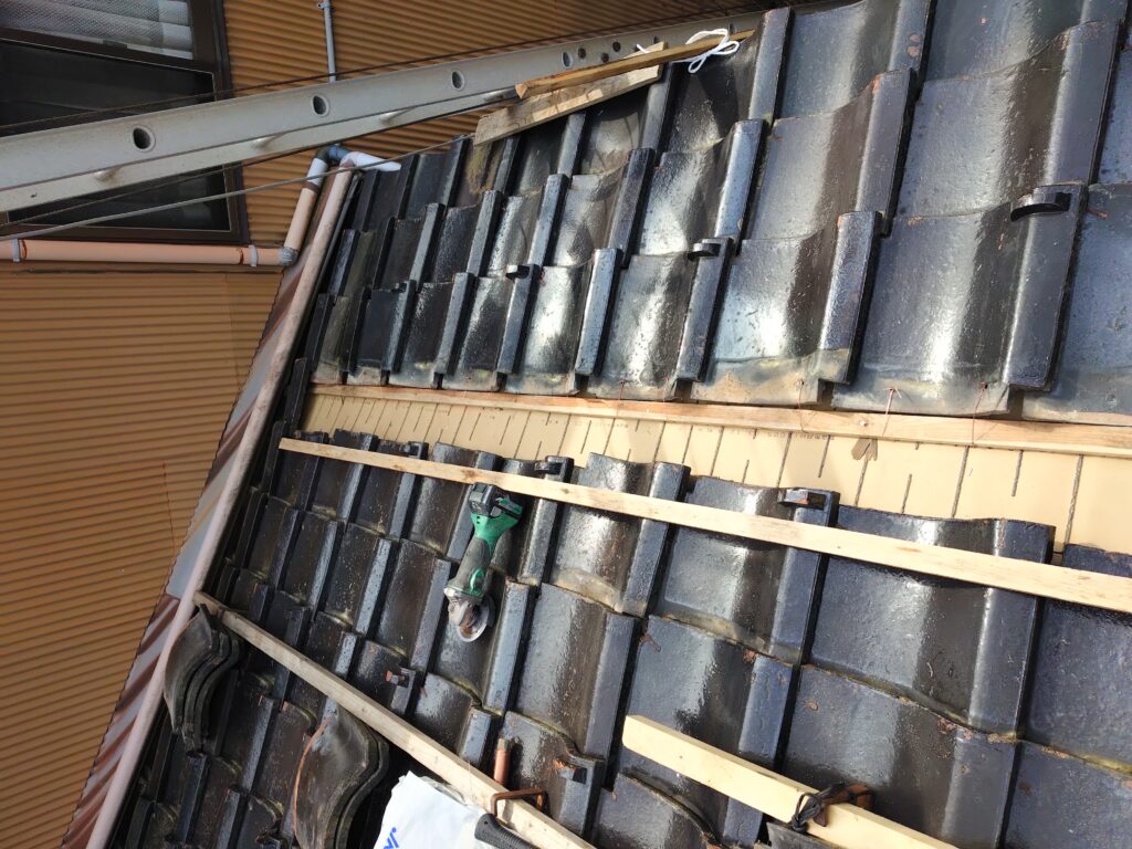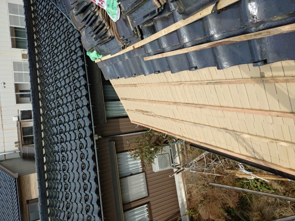 上の方へ進めていきます。 同じように既存の瓦を解体します。