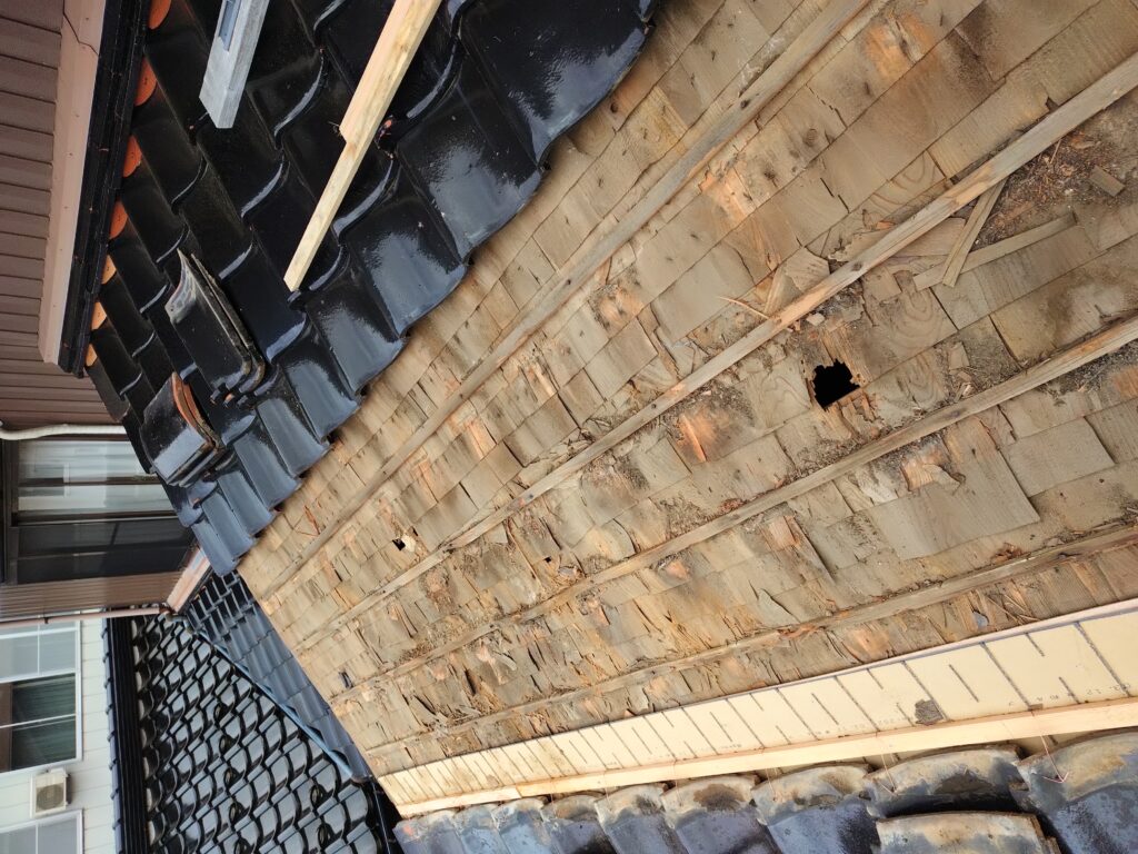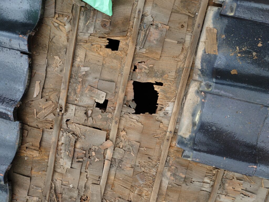 下地の腐食が著しい箇所です。 屋根材の下は普段目視できないので、雨漏りなどで気付かれる方も多いです。